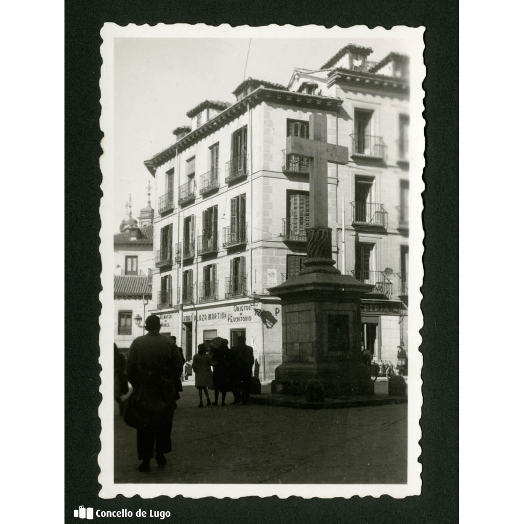 Rúa de «Cuchilleros». Madrid Identificación e descrición Referencia: Colección fotográfica Delgado Guisasola / 1908. Título: Rúa de «Cuchilleros». Madrid. Autor: Descoñecido. Data de creación: / Década: 1941-1950. Nivel de descrición: Unidade documental. Volumen e soporte: 1 fotografía, 6×6 cm, positivo, branco e negro. Historia e alcance Alcance e contido: Vista xeral dunha praza cunha cruz, […]